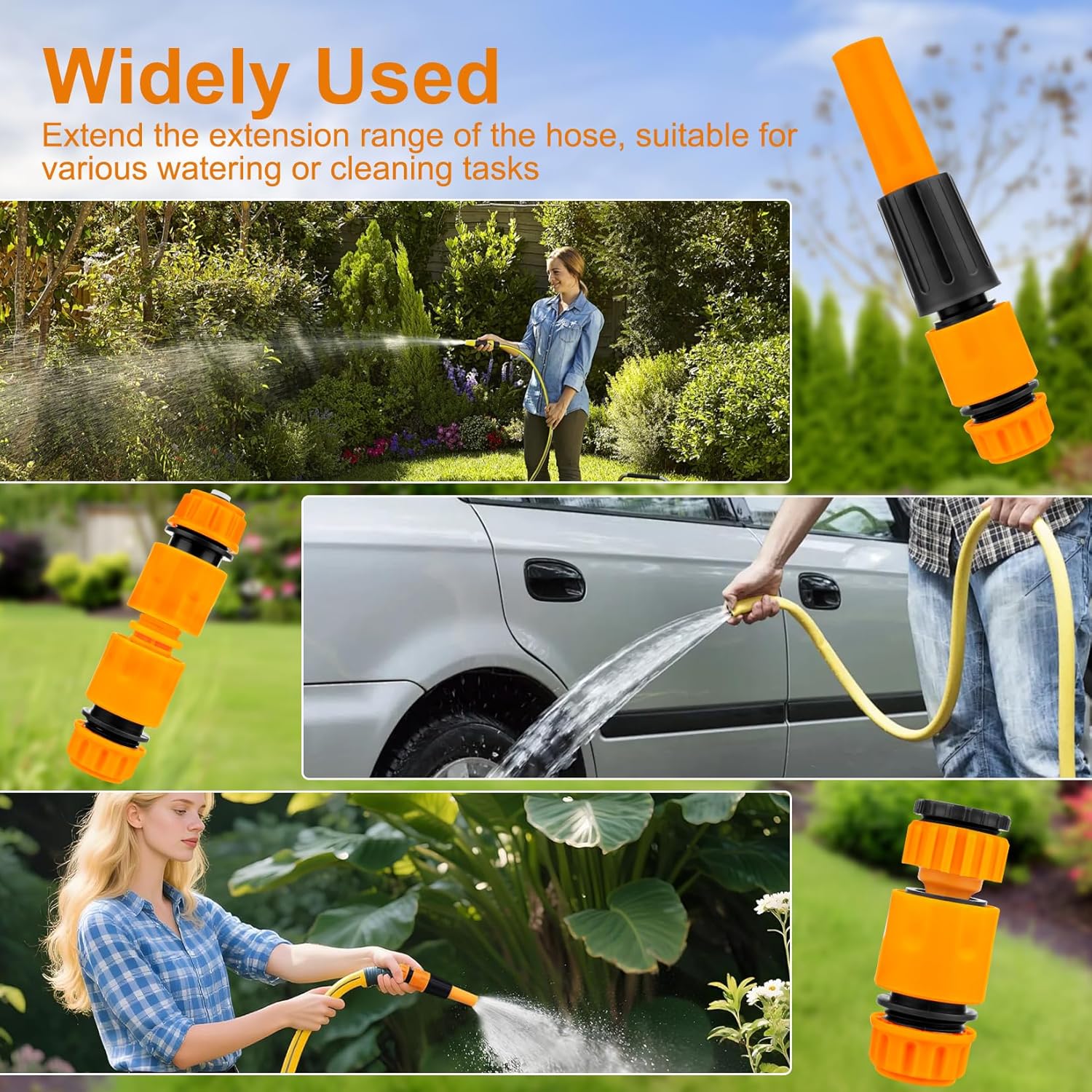 USO VERSÁTIL: best para regar el jardín, plantar en el patio, lavar autos e incluso conectarlo a una lavadora. El juego es appropriate con la mayoría de mangueras y grifos estándar, lo que amplía el alcance de la manguera y la hace adecuada para diversas tareas de riego o limpieza.