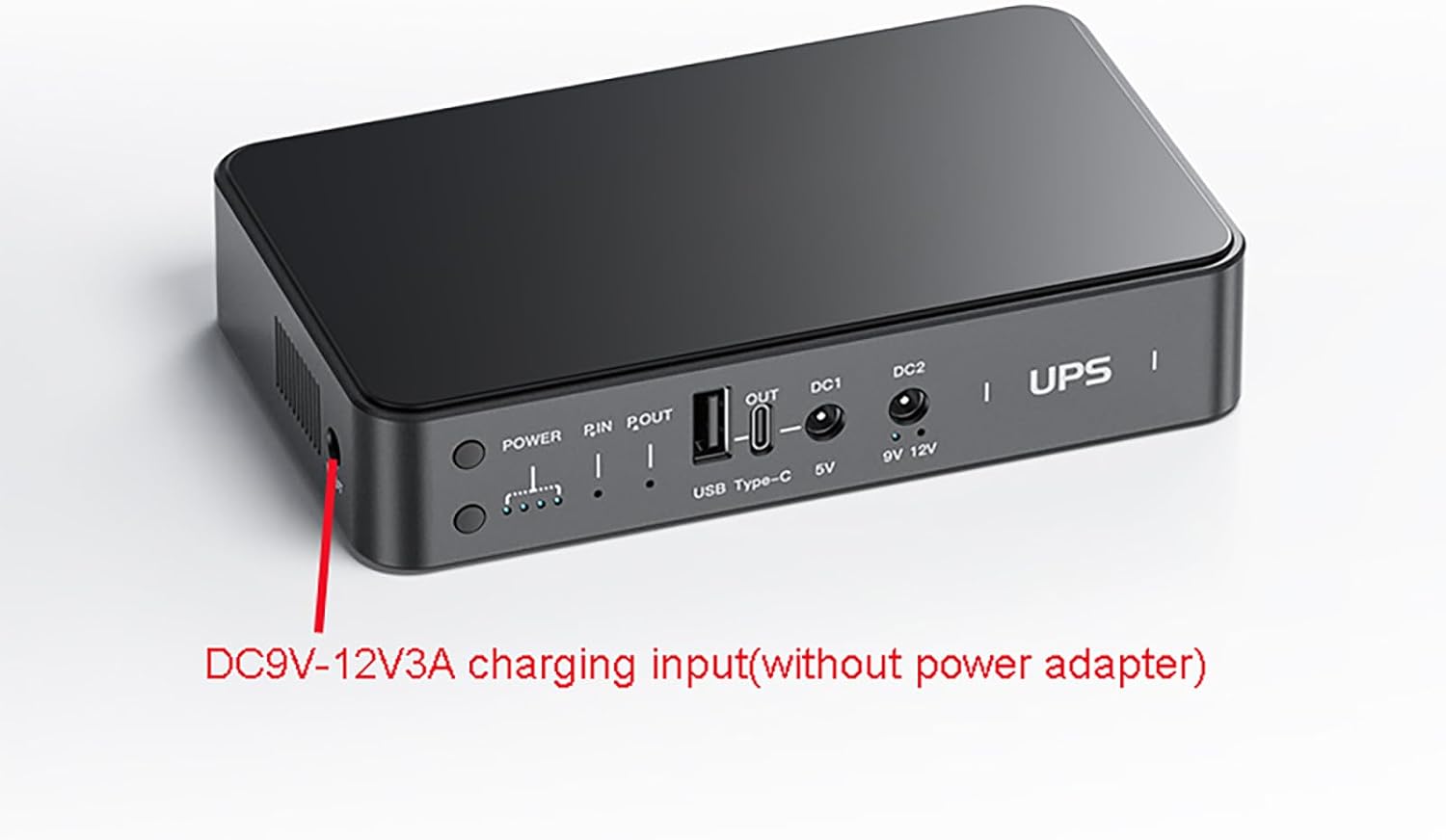 Fuente de alimentación ininterrumpida UPS de 4 puertos USB+tipo C + salida de 2 x 5,5 x 2,1 mm con luz indicadora, salida 5V9V12V2A.