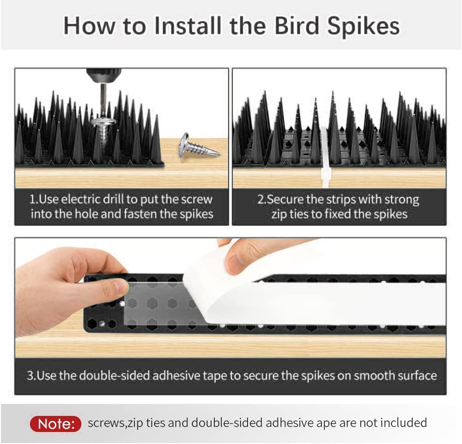 (Método de Instalación) Los Clavos Antibalas se Pueden Fijar Con Clavos, Cinta adhesiva de Doble Cara o Cremallera y Se Pueden Instalar en Techos, Vallas, Cobertizos, Marcos de Pared Y Terrazas.