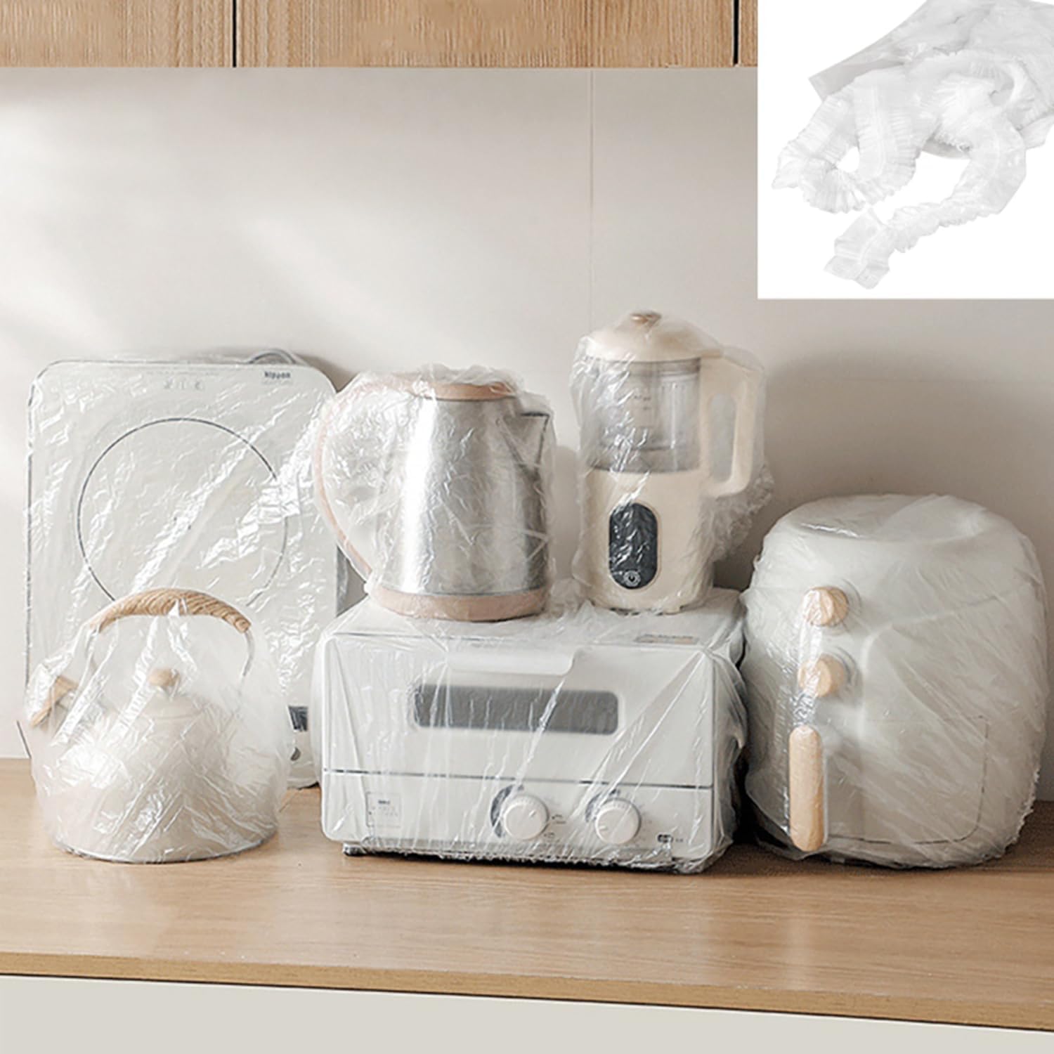 Materials espesado El protector contra el polvo desechable está hecho de materials PE de calidad alimentaria, que es ecológico y resiste pinchazos y desgarros, lo que garantiza que las ollas de la cocina permanezcan limpias y sin daños.