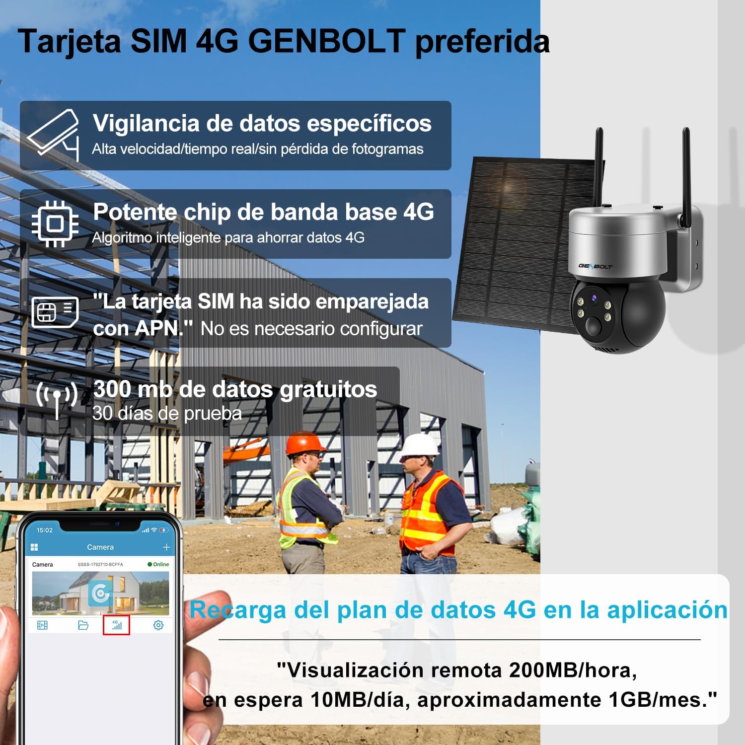 🌞【 Tarjeta SIM de preferd GenBolt 4G】 Cámara Vigilancia Exterior 4G Puede Recargar y Comrobar LOS Datos 4G en Cualquier Momento en Celular App. Vigilancia de Datos Dedicados, de Alta Velocidad, en Tiempo actual, sin caída de Fotogramas. Potente 4G BaseBank Chip + Algoritmo Inteligente Para Guardar Los Datos de Cámara Vigilancia Sin Wifi. Genbolt 4g Tarjeta Sim Ha Sido Emparejado Con apn, No hay necesidad de configuración.
