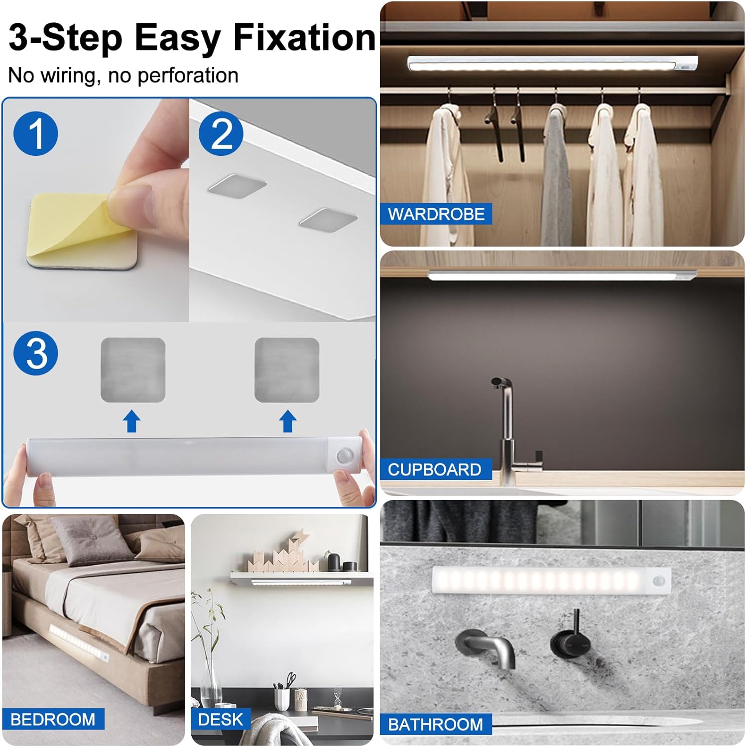 【Detección precisa, usos amplios】 Cuenta con tecnología de detección de infrarrojos, rendimiento confiable, alta sensibilidad y puede detectar con precisión sus movimientos. 60 LED de alta calidad proporcionan una fuente de luz más estable y visualmente clara, perfecta para gabinetes, baños, guardarropas, cocinas, escaleras, pasillos, dormitorios, garajes, cajones, and many others., que pueden satisfacer sus diversas necesidades.