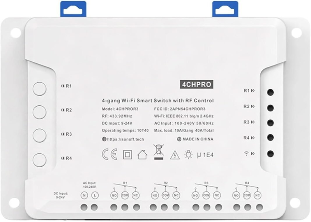 Management remoto en cualquier lugar: enciende y apaga fácilmente 4 dispositivos eléctricos desde cualquier lugar utilizando la aplicación «for eWeLink». Soporta management remoto RF de 433 MHz para mayor comodidad.