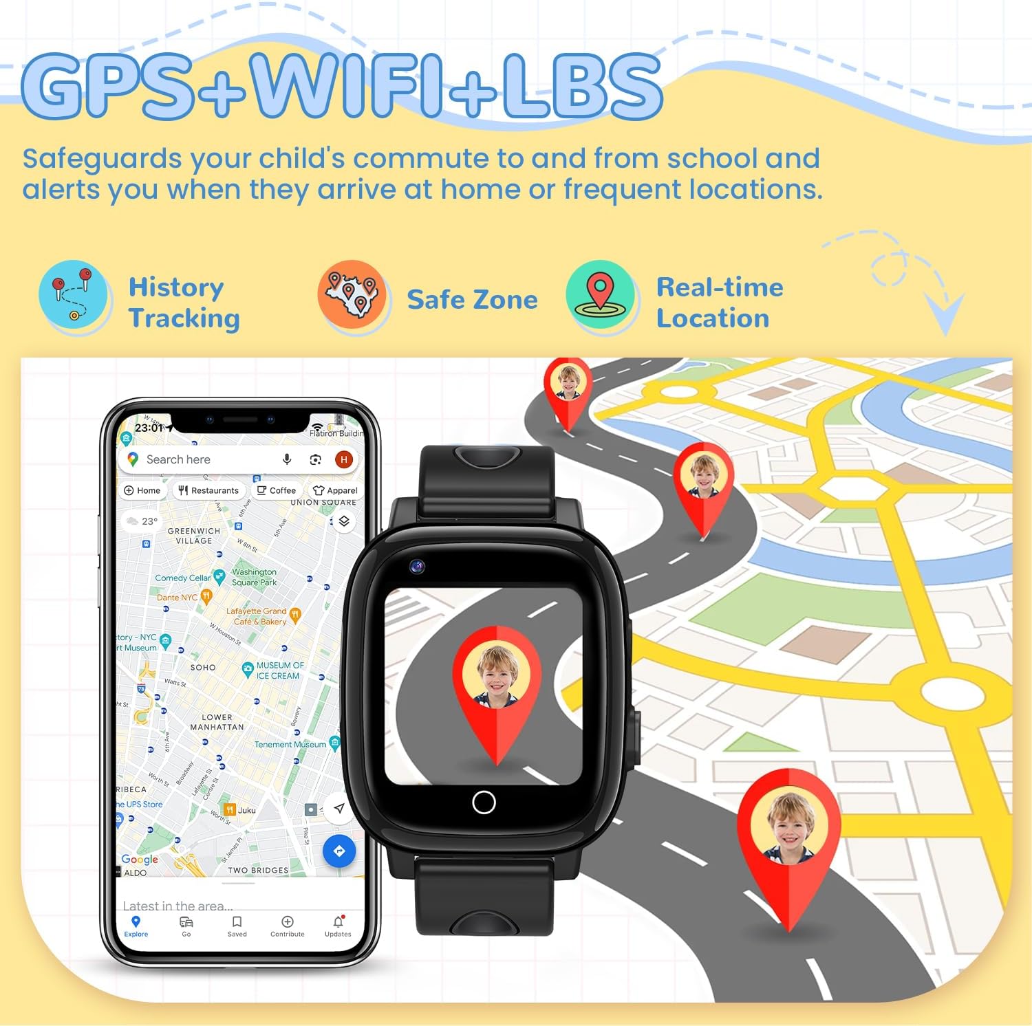 🌍Protección de localización triple: utiliza un algoritmo de localización IA, combinado con tecnologías de GPS, Wi-Fi y LBS para una localización más precisa. Admite la visualización del historial de rutas. Los padres pueden ver la ruta de su hijo a través de Setracker2 y recibir alertas. Después de establecer una zona segura, los padres reciben una notificación inmediata si el niño sale de ella. Protección de localización las 24 horas para la seguridad y tranquilidad de los padres.