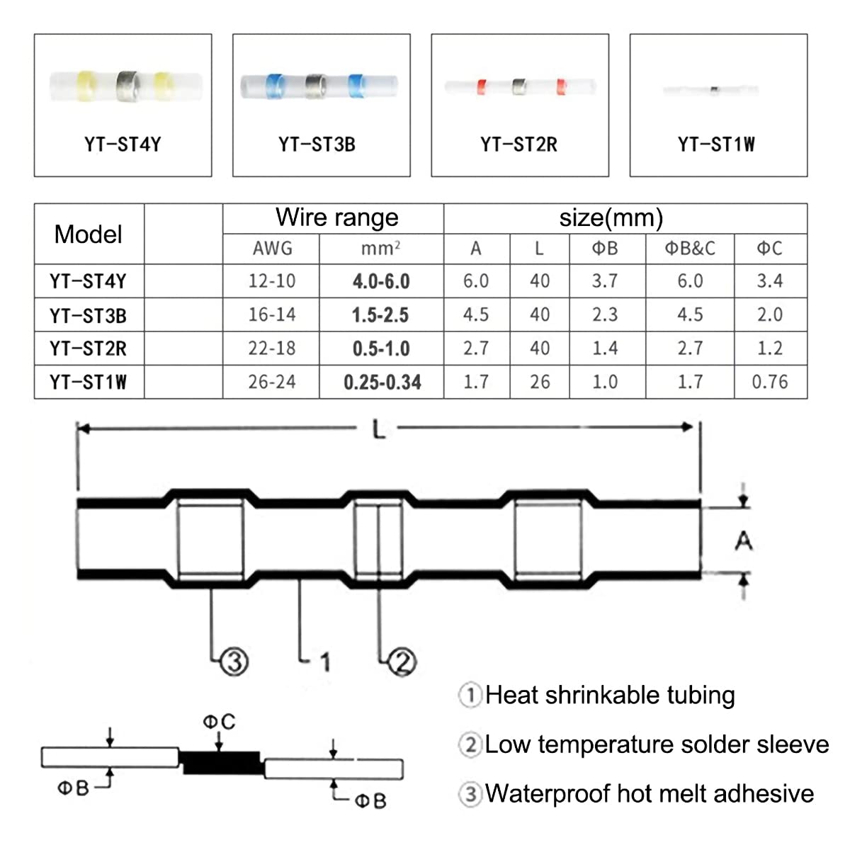 500Pcs Junta de Soldadura Conector de Alambre-Conectores de Punta a Tope de Soldadura por Encogimiento-Kits de Conectores de Soldador-Bornes de Alambre Impermeables Aislados para Automóviles y Buques