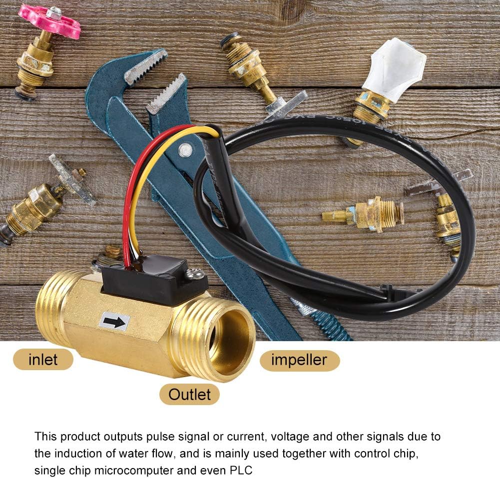 Sensor de flujo de agua tipo G1/2, su presión máxima de agua es de 1,75 MPa, el rango de flujo es de 1 l/min a 30 l/min. Conexión de tres cables: rojo para positivo, negro para negativo, amarillo para señal de pulso