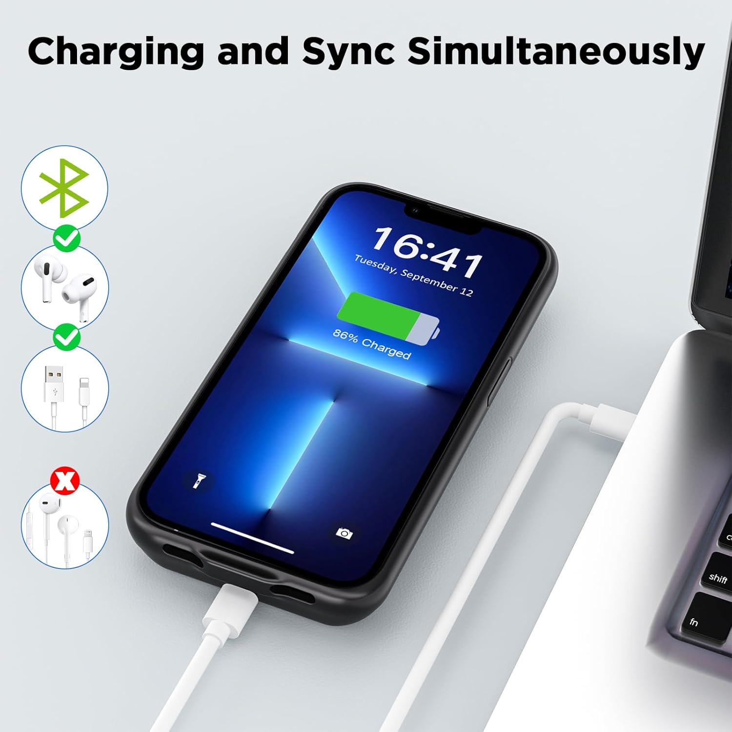 Tecnología de sincronización – La tecnología de sincronización única le permite sincronizar su teléfono sin quitar la funda de carga, y también se puede cargar al mismo tiempo. 100% suitable con todas las versiones de iOS, Apple Pay y futuras actualizaciones de software program iOS (Apple Automotive Play no es suitable).