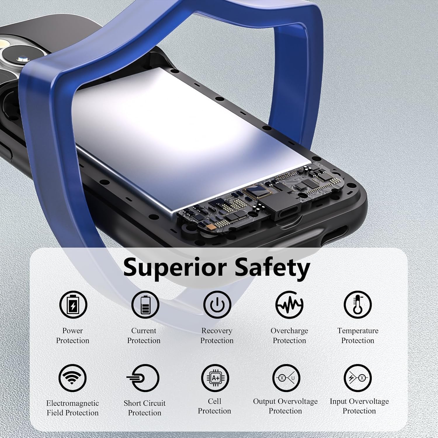 (Capacidad de actualización) – La capacidad de actualización de 7000 mAh te ofrece más del 150% de potencia para tu iPhone, es decir, Obtienes 50 horas de audio adicionales, 19 horas de conversación, 20 horas de uso de Web y 5 horas de reproducción, por lo que no tienes que preocuparte por quedarte sin energía.