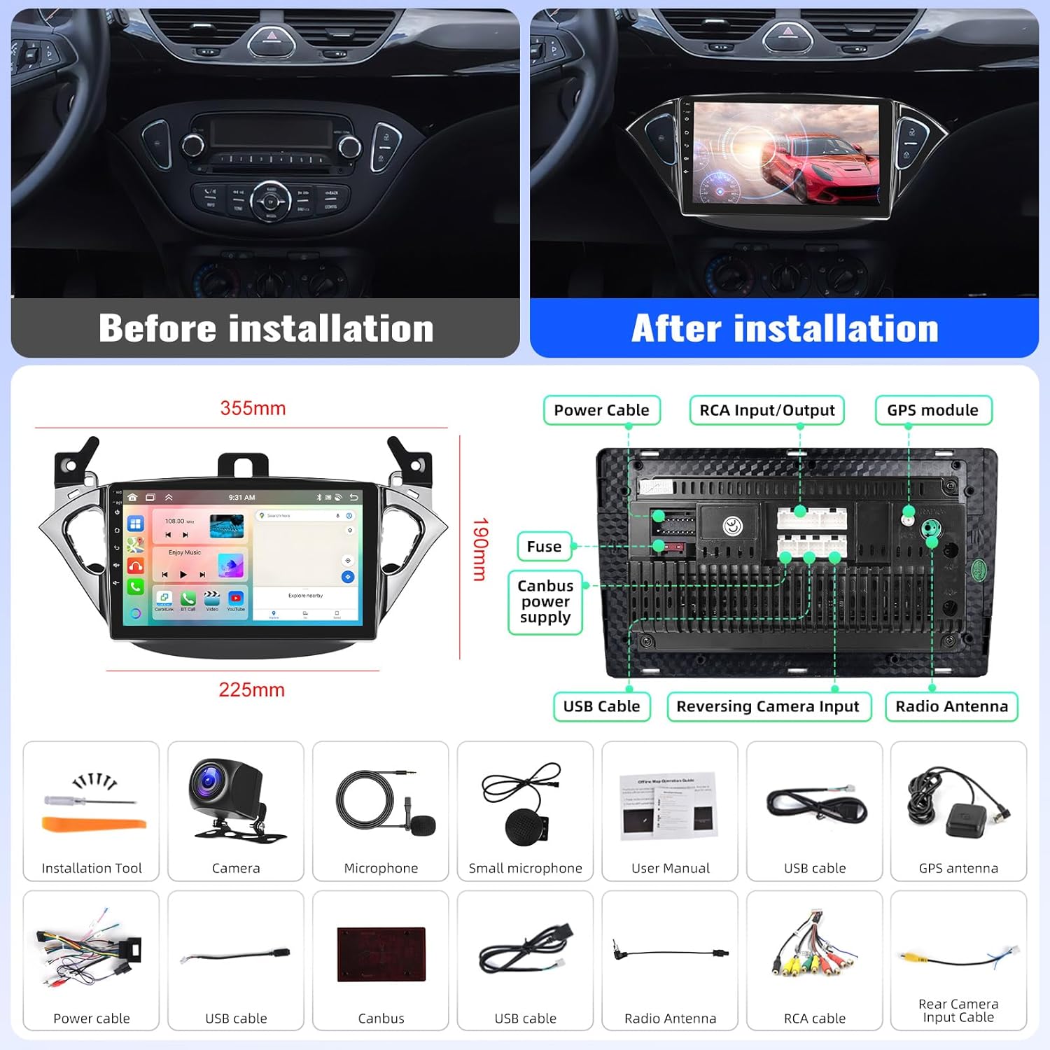🚖【 Específico】 Radio de Coche Doble Din Con Pantalla Tálil de 9 Pulgadas, Sistema Android 12, Chip de 8 Núcleos, 2GB RAM+64GB ROM, inclusión si abre varias interfaces de los funciones de al mismo tiempo, pude funcionar rápidamente y problema. Radio de Coche para Opel Corsa (2015-2019) Y Opel Adam (2013-2016).