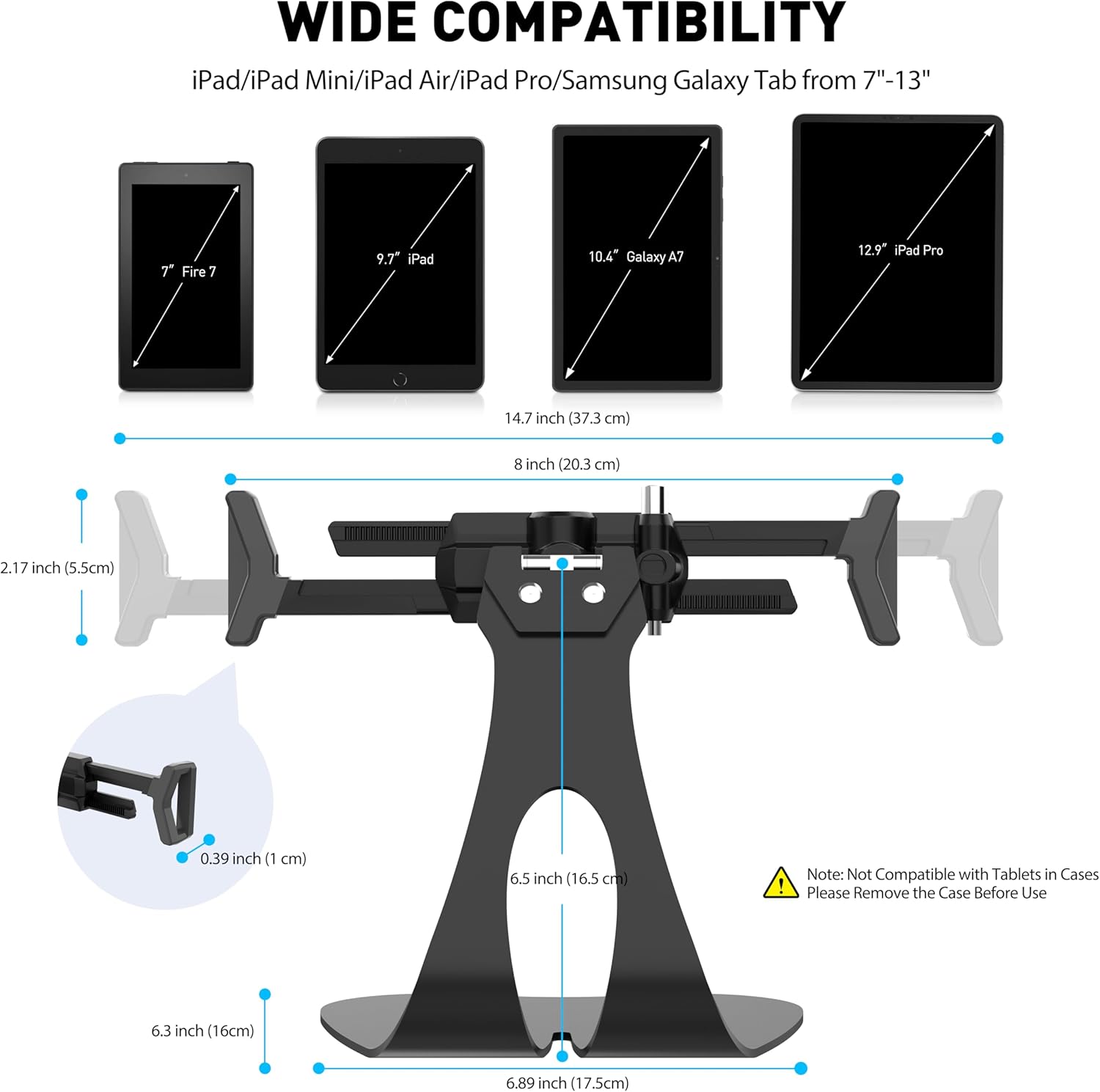 Amplia compatibilidad: el soporte para tableta AboveTEK cuenta con una abrazadera ajustable que se adapta de forma segura a tabletas de 7 a 13 pulgadas, lo que lo hace adecuado para mostradores de negocios, oficinas, escuelas o uso doméstico.
