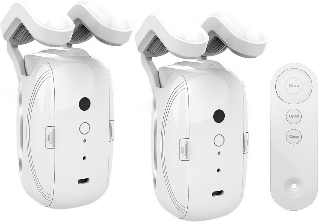 Abridor de cortina eléctrica inteligente con management remoto y aplicación activada por voz, motor mejorado para barra romana/pista I/U, fácil instalación, diseño de doble apertura