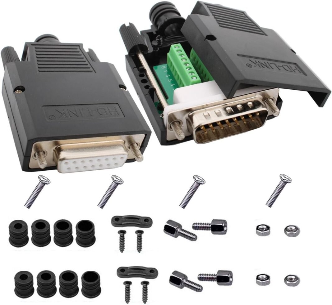 ☞Conectores DB15 macho y hembra de 15 pines, tipo tornillo/sin soldadura, fáciles de usar, solo requieren un destornillador y un pelador para instalar.