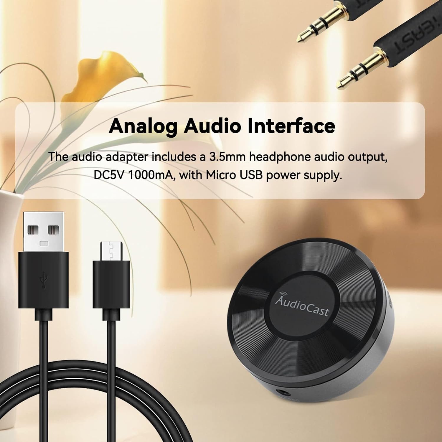 (𝐈𝐧𝐭𝐞𝐫𝐟𝐚𝐳 𝐝𝐞 𝐚𝐮𝐝𝐢𝐨 𝐚𝐧𝐚𝐥ó𝐠𝐢𝐜𝐨): El adaptador de audio incluye una salida de audio parauriculares de 3,5 mm, dc5v 1000MA con suministro de energía micro usb. El equipment incluido instrucciones para aydarlo un comprador rápidamete cómo Usar el adaptador de música wifi.