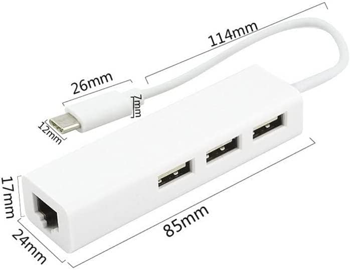 Adaptador USB C Ethernet, con 3 Puertos USB 2.0, HUB USB C Ethernet LAN, Tarjeta de Crimson LAN USB2.0 RJ45 Tipo C a Ethernet