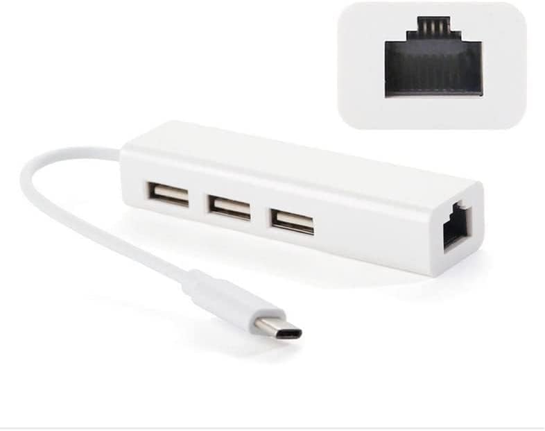 Adaptador USB C Ethernet, con 3 Puertos USB 2.0, HUB USB C Ethernet LAN, Tarjeta de Crimson LAN USB2.0 RJ45 Tipo C a Ethernet