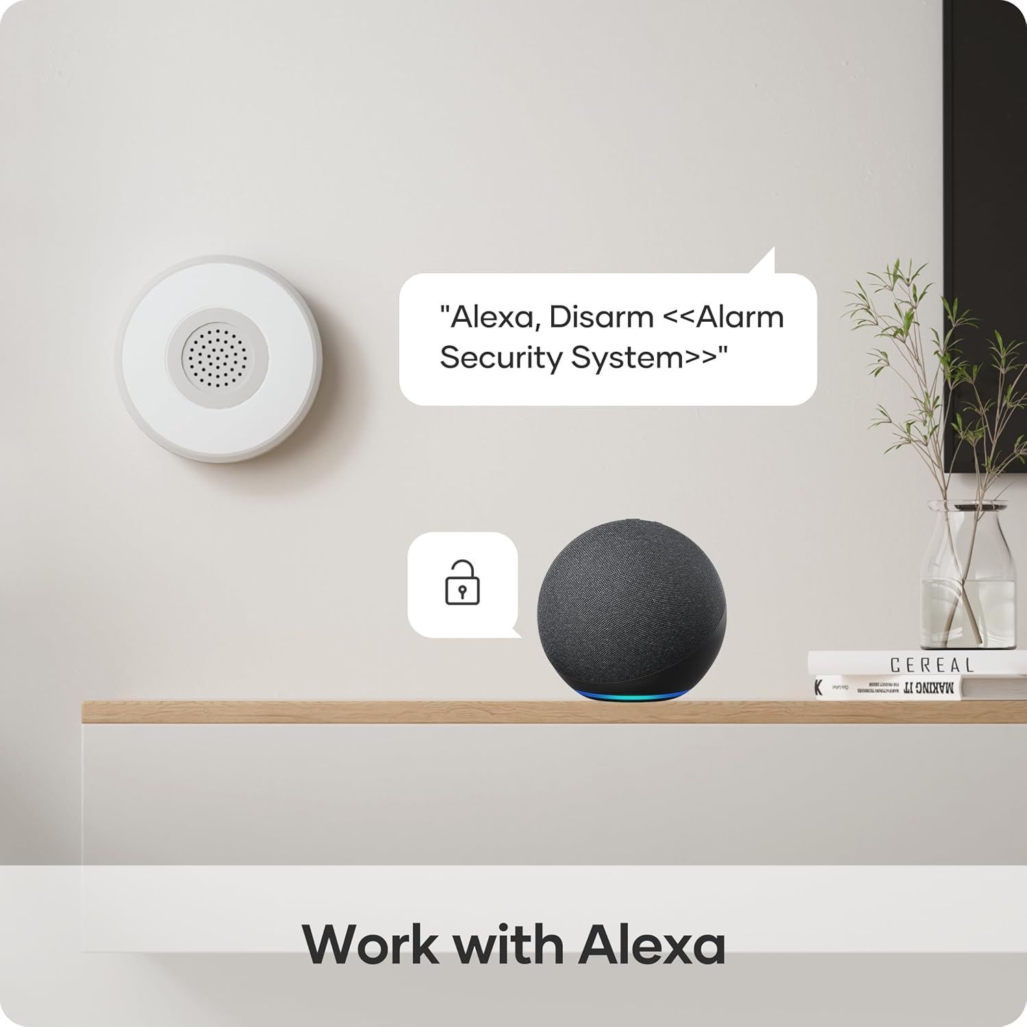 ✅【Management de voz Alexa】Cambia el modo de alarma en casa y controla el bloqueo de escena con los controles de voz Alexa.