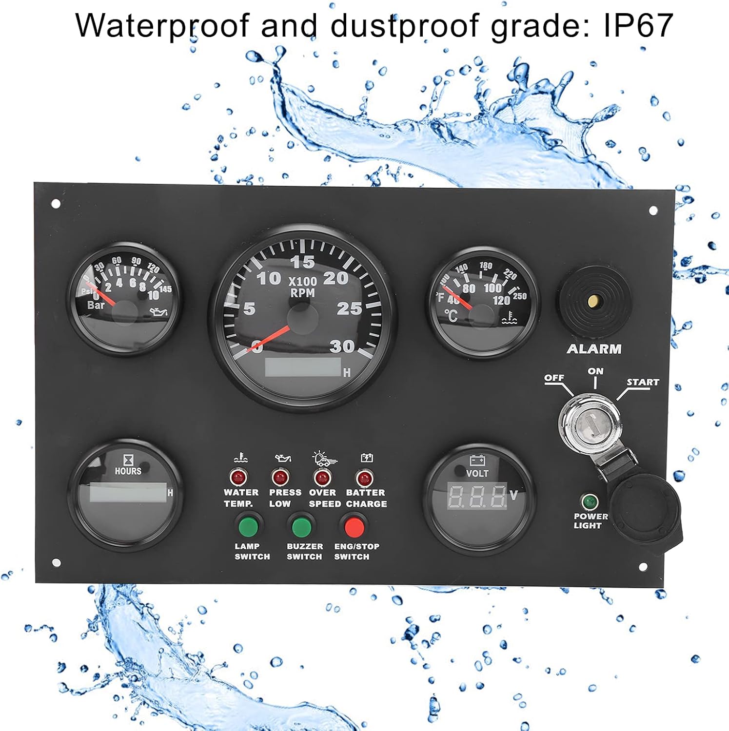 Descripción: Tablero de superficie de cinco unidades para yates RV de 12 V/24 V, el panel de modificación de management central viene con cinco medidores de trabajo, manómetro de aceite, medidor de temperatura del agua, horómetro y medidor de voltaje, que pueden funcionar al mismo tiempo.