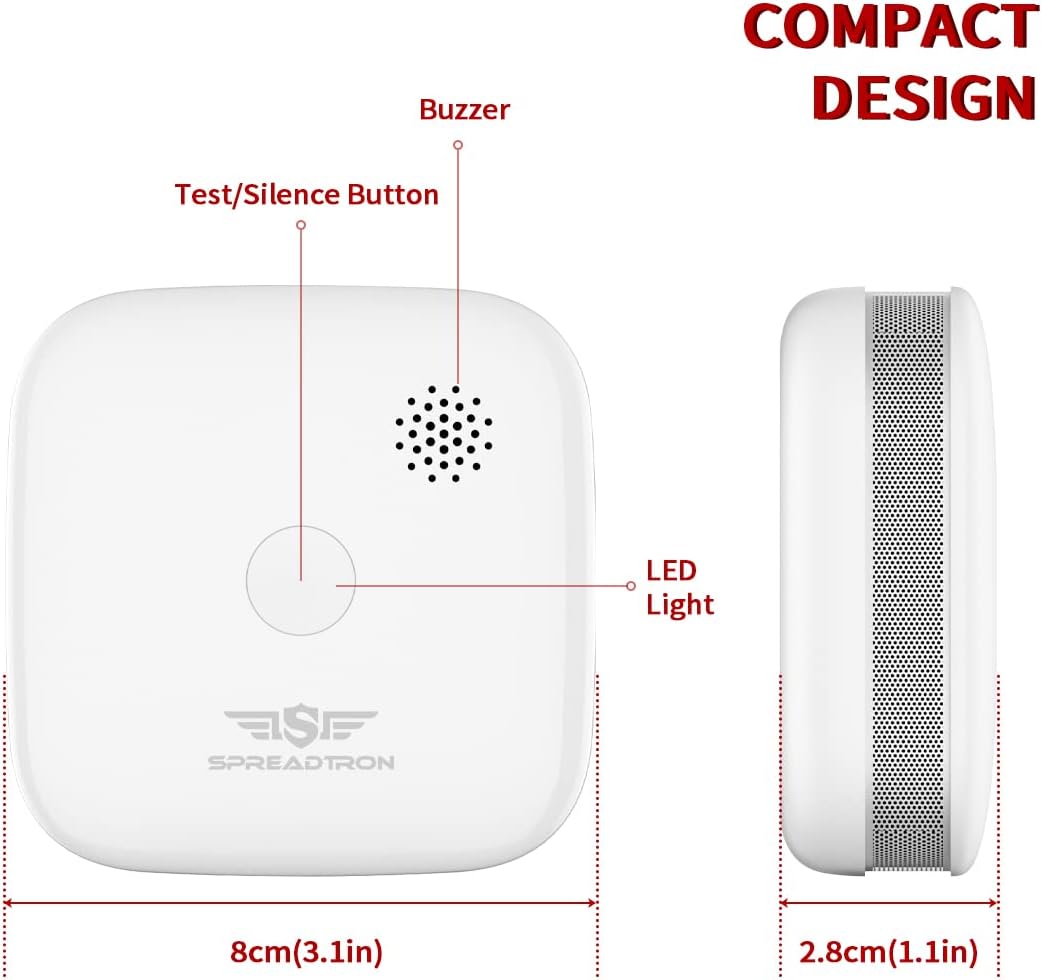 Alarma de Humo Inalámbrica Interconectada SPREADTRON | Batería Reemplazable de 5 Años | Amplia Cobertura para una Protección Complete del Hogar