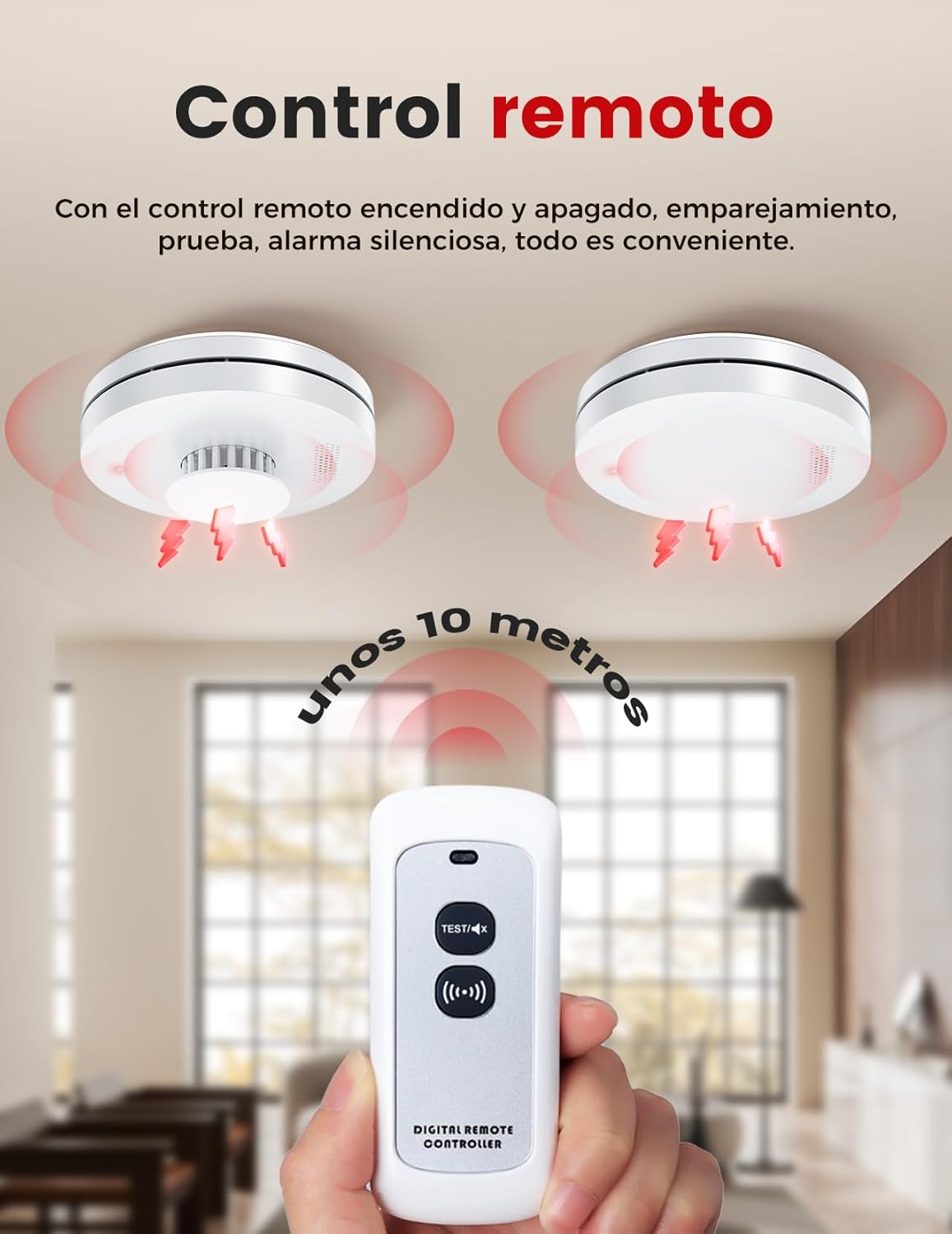 🎖️ 【Interconexió Inalámbrica】 Conecta Hasta 30 Alarmas de Forma inalámbrica para una monitorizante integral del HOGAR; si una alarma detecta Peligro, Todos los dispositivos interconectados Hacen Sonar la Alerta.