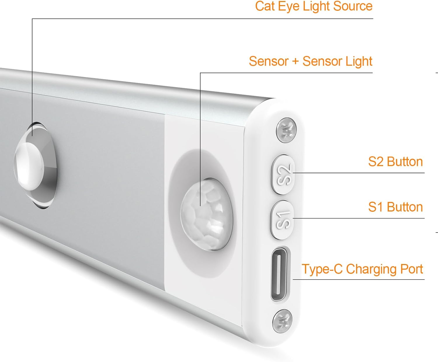 🌟 【Carga Rápida y Duradera】- Nuestra luz led recargable usb viene con una batería incorporada de 1500 mAh. Recárguela fácilmente con un cable tipo C y disfrute de 8-10 horas de uso continuo en ‘Modo siempre encendido’ o hasta 1-2 meses en ‘Modo de detección’.