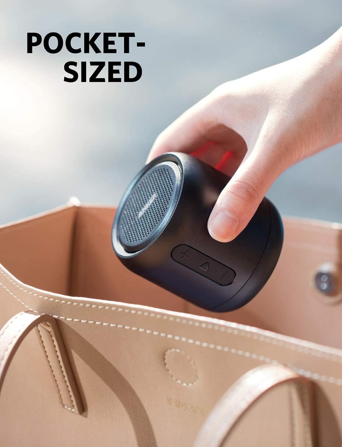Soundcore mini tiene soporte micro SD, puerto de entrada AUX y radio FM. Si tu móvil se detiene, tu música sigue sonando.