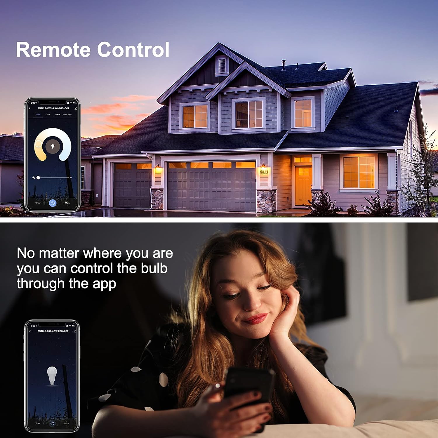 【Management Remoto】: No importa cuándo y dónde, puedes controlar fácilmente la bombilla wifi a través de la aplicación gratuita «Good Life» en su dispositivo Android o iOS. También puedes controlar varias bombillas inteligentes al mismo tiempo a través de la aplicación. Además, tienen una función de temporizador, así como de encendido y apagado automático.