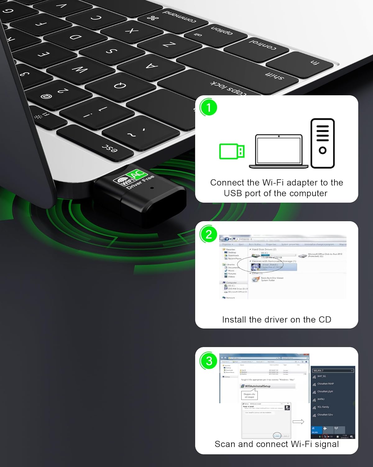 【Amplia compatibilidad】Este Receptor WiFi para PC es appropriate con Home windows XP, 7, 8, 10 y 11, ofreciendo una amplia compatibilidad para facilitar el uso para todos. (Nota: No appropriate con sistemas Vista/Mac).