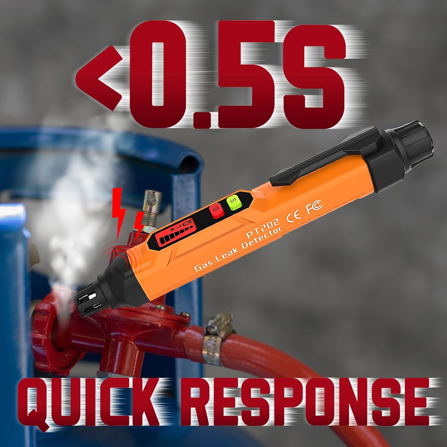 Alarma de gasoline sonora y visible: la pantalla roja intermitente y las alertas audibles de 75 dB una vez Encuentran fugas de gasoline a lo largo de la tubería o alrededor de los puntos de fuga sospechosos. Rango de Detección: 50 A 5000 ppm Tan Rápido como 0,5 segundos de Detección.