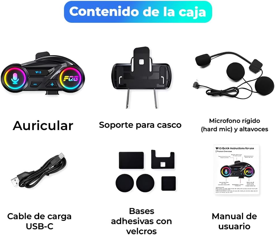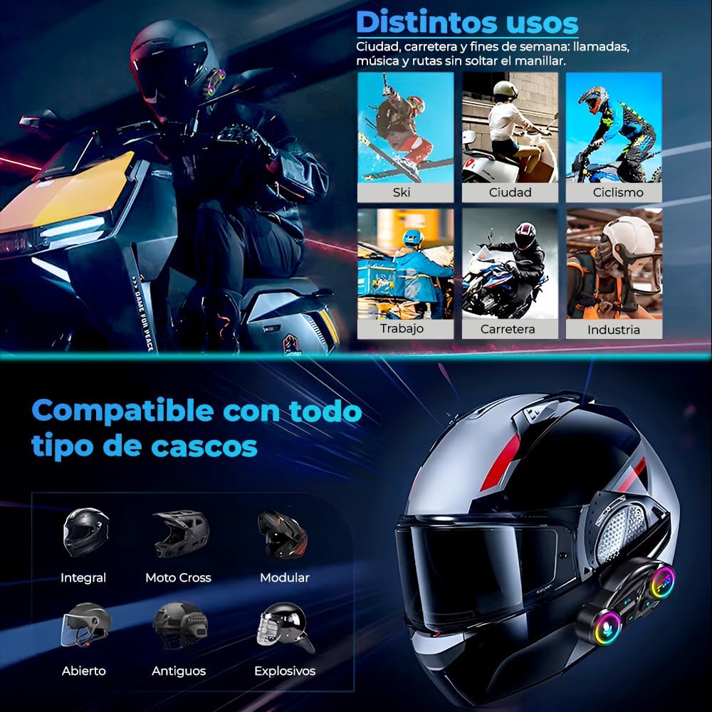 Conduzca concentrado, comuníquese sin fricciones. Estos auriculares para casco integran Bluetooth 6.0 para ofrecer un enlace estable y de baja latencia con su smartphone: la navegación, la música y las llamadas fluyen continuamente. La conexión twin permite tener dos teléfonos operativos (private/trabajo) y prioriza la llamada entrante sin tener que intervenir. Audio optimizado para casco. Los altavoces ultrafinos se adaptan sin presionar la oreja y ofrecen un sonido claro diseñado para montar en bicicleta: voces definidas en las llamadas y un nivel de volumen constante bajo un casco integral, modular o jet. El micrófono incorpora filtrado de viento/ruido para que puedas escuchar con claridad cristalina en la ciudad o a gran velocidad. Autonomía que acompaña tu día. La batería de 1000 mAh proporciona hasta 20 horas de uso mixto. Cuando llega el momento de recargar, el puerto USB-C devuelve la carga en ≈2 horas. La gestión inteligente de la energía amplía el modo de espera y cuida la batería a largo plazo. Listo para la lluvia. Con IPX6, este auricular para casco de moto se mantiene operativo bajo lluvia intensa y salpicaduras (no sumergible), para que la climatología no condicione tus llamadas ni tu navegación. Instalación limpia y reubicable. Montaje sin herramientas con base adhesiva y: fijar, conectar altavoces y micrófono, emparejar y listo. El perfil bajo es discreto y si cambias de casco, podrás reubicar el conjunto en minutos. Uso actual, manos libres reales. Activa la respuesta automática para atender sin soltar el manillar y utiliza el asistente de voz (Siri/Google) para cambiar de canción, pedir ruta o llamar por nombre. Superb para desplazamientos diarios en moto o scooter y salidas de fin de semana: un sistema único para tus rutinas y tus escapadas. Qué está incluido Unidad principal (auriculares de casco) 2 parlantes ultradelgados Micrófono con soporte Bases adhesivas y almohadillas + Cable de carga USB-C Guide del usuario Notas de uso IPX6 protege contra la lluvia; no apto para inmersión. La calidad de las llamadas también depende de la cobertura móvil. El asistente de voz requiere tener Siri/Google habilitado en el teléfono.