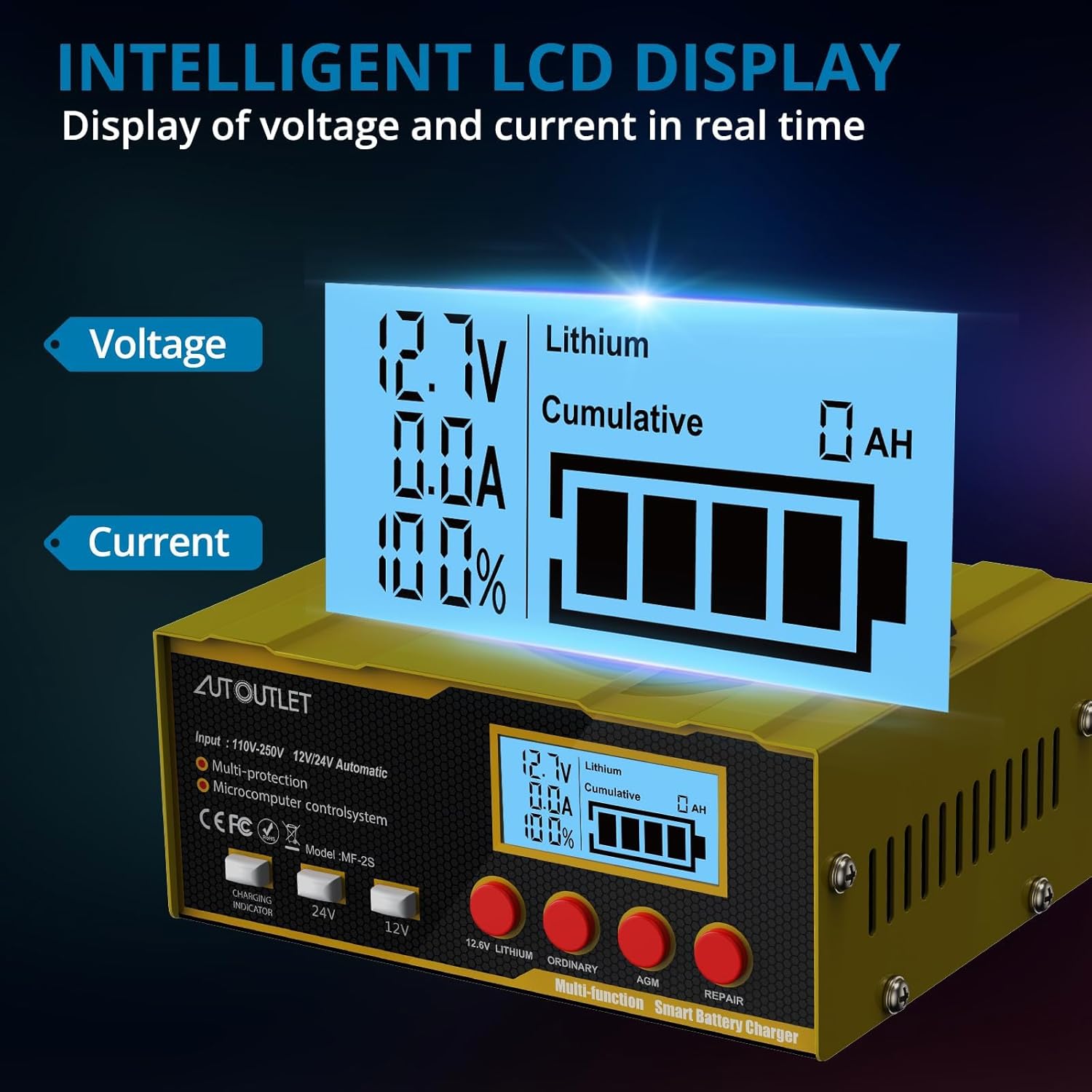 【Carga rápida y reparación de batería】 Nuestro producto puede alcanzar una potencia máxima de hasta 220 W, 12 V 12 A/24 V 8,5 A, lo que permite una carga rápida de sus baterías, cuenta con un modo de reparación de pulso para reparar una batería de bajo voltaje.