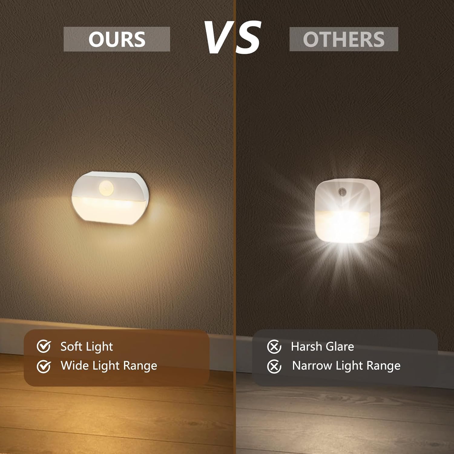 Encendido y apagado automático: la luz nocturna LED dispone de un detector de movimiento y un sensor de movimiento por infrarrojos. Cuando la luz es tenue y las personas o mascotas pasan, la luz nocturna LED se enciende automáticamente y se apaga después de 30 segundos. El rango de detección es de 3 metros y 120°.