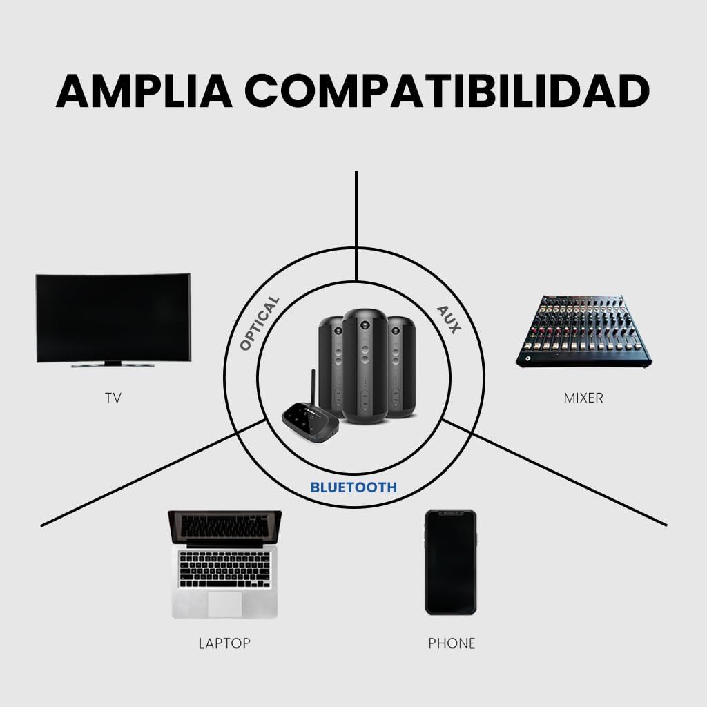 (Configuración Sencilla) Enciende el Transmisor y Los Altavoces, Se conectarán Auticamete – Sin App Ni Emparejamiento.