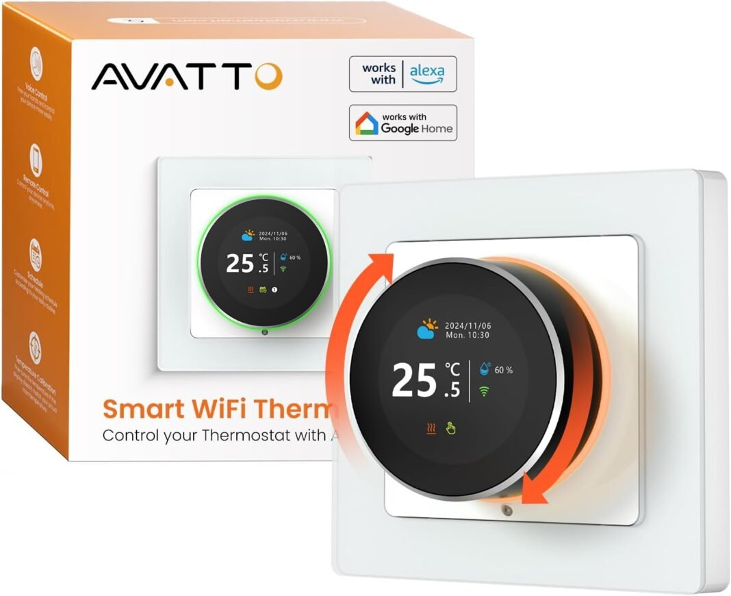 AVATTO Termostato de calefacción por suelo radiante de agua, 55 x 55 estándar, termostato inteligente WiFi, programable, termostato de ambiente, appropriate con Alexa, management por voz de Google Dwelling y aplicación remota Sensible Life