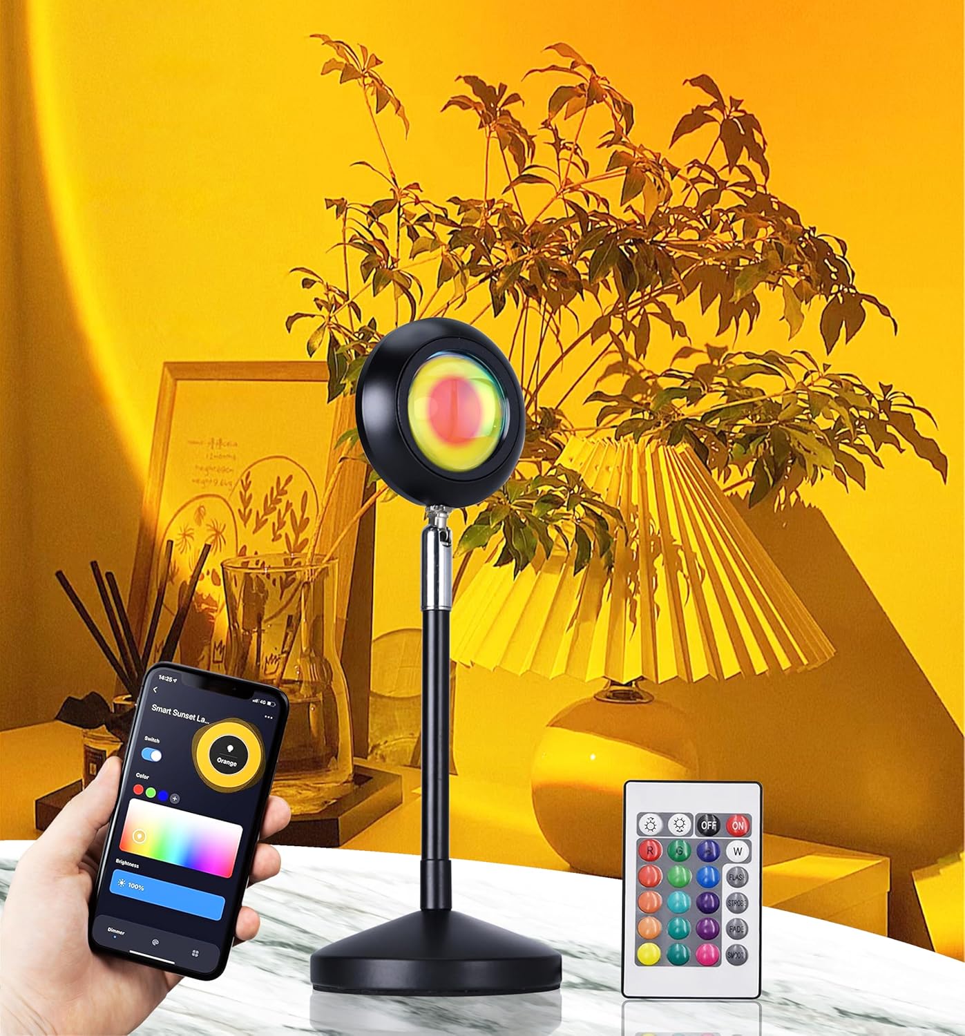 Lámpara de sol controlada por la aplicación: simplemente descargue la aplicación a través del código QR en el handbook de instrucciones y conéctela a la bombilla a través de WiFi. La aplicación puede implementar el modo de coloration, ajuste de brillo y funciones de temporizador.