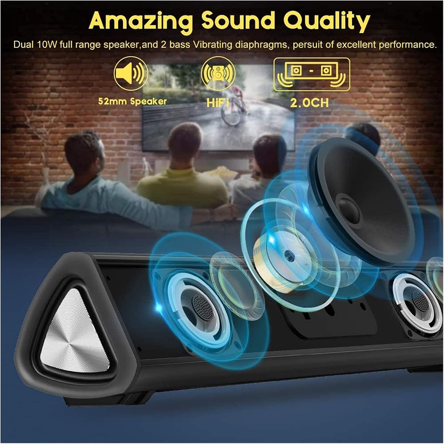 Sonido envolvente de llenado de la habitación: 2.0 CH Sistema de altavoces multimedia equipado con 2 altavoces de rango completo y 2 diafragmas vibrantes de bajo devour una experiencia de audio espacial increíble y espacial para el mejor sonido en basic de la barra de sonido pequeña.