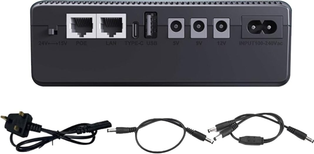 Compatibilidad con múltiples dispositivos: esta batería de respaldo de UPS, con una batería grande incorporada de 10400 mAh, admite el uso de múltiples dispositivos y proporciona un buen almacenamiento de energía de respaldo para dos dispositivos simultáneamente.