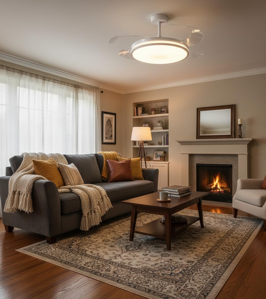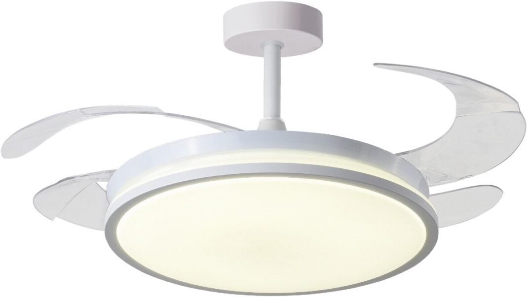 BEL AIR HOME – DUNE Ventilador de Techo con Aspas Desplegables Luz LED 36W en 3 Temperaturas de Luz con Mando a Distancia – Motor DC Eficiente y Silencioso (Blanco)