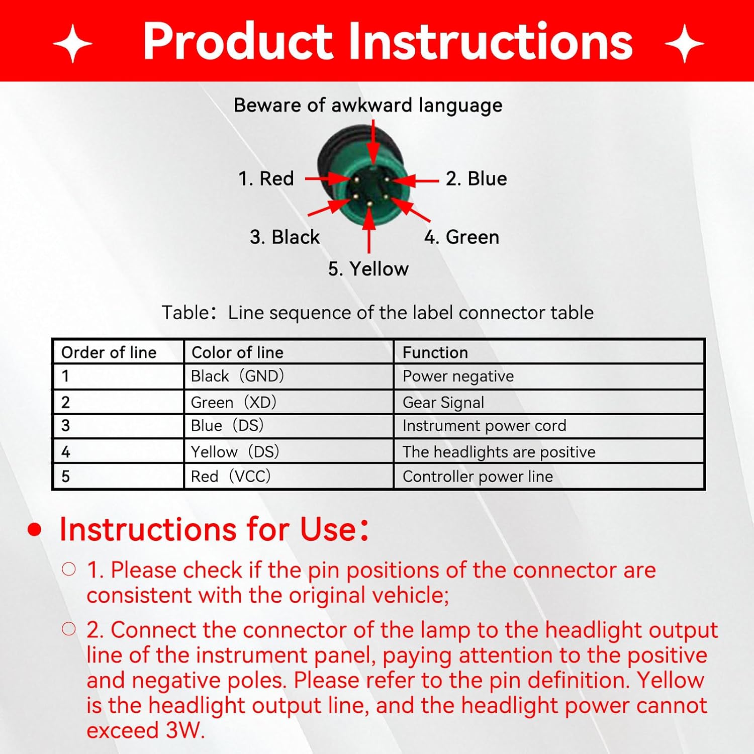 4 、 Materials Duradero: Hecho de Materials Abs de Alta Calidad, El Marcador es Resistente Al Desgaste y Duradero. El Enchufe Adopta la Cabeza Macho 5p Impermeable, Mejora El Rendimiento.