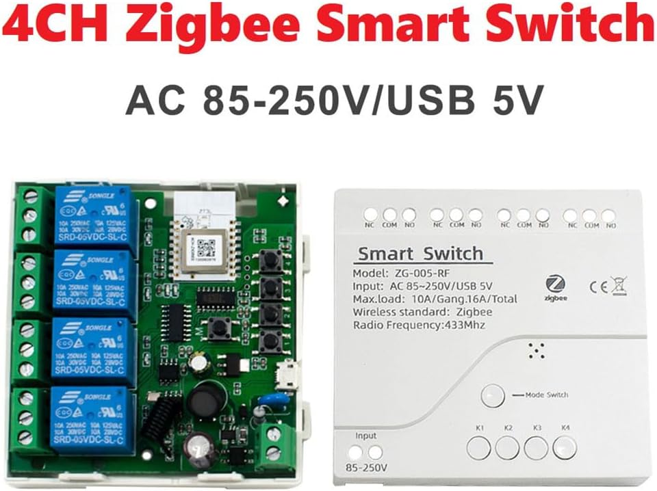 Blashrd Módulo de Interruptor Inteligente Zigbee de 4 Canales, Relé de 85-250 V, Management remoto para el HOGAR INTELIGENTE, FUNCIA CON PUERTA DE ENLACE PARA ALEXA, HOGAR, PIZAS DE REPUSTO