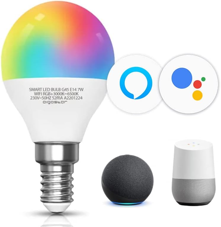 💡 Bombilla inteligente LED: Bombilla inteligente de casquillo G45 E14, con potencia de 7 W 500 Lúmenes. Larga vida útil hasta 25000 H. Suitable con Alexa y Google Dwelling. Equivalencia en bombilla incandescente: 42 W