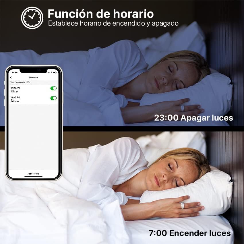 💡 Con temporizador: Despreocúpate y planifica con el temporizador para controlar el encendido y apagado de tus bombillas inteligentes.