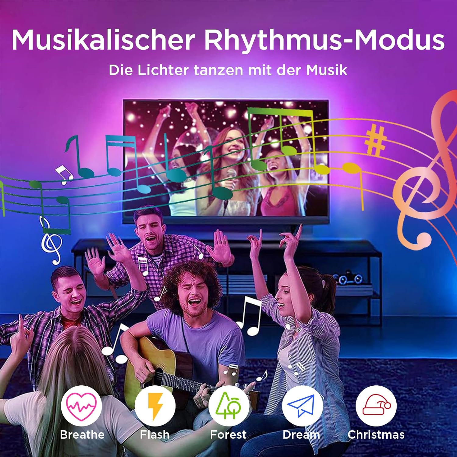 💡【Temporizadores y modo de música】: Después de emparejar la luz con la aplicación, puede configurar un temporizador para la luz y establecer el tiempo de encendido o apagado por adelantado para ahorrar energía. La aplicación también ofrece 12 escenas preestablecidas: Lectura, Trabajo, Buenas noches y Festivales, entre otras, para que puedas disfrutar sin esfuerzo de una gran variedad de ambientes llenos de colour. Lively el modo de tempo musical y, cuando el micrófono detecte un sonido, el colour de la luz cambiará con el sonido.