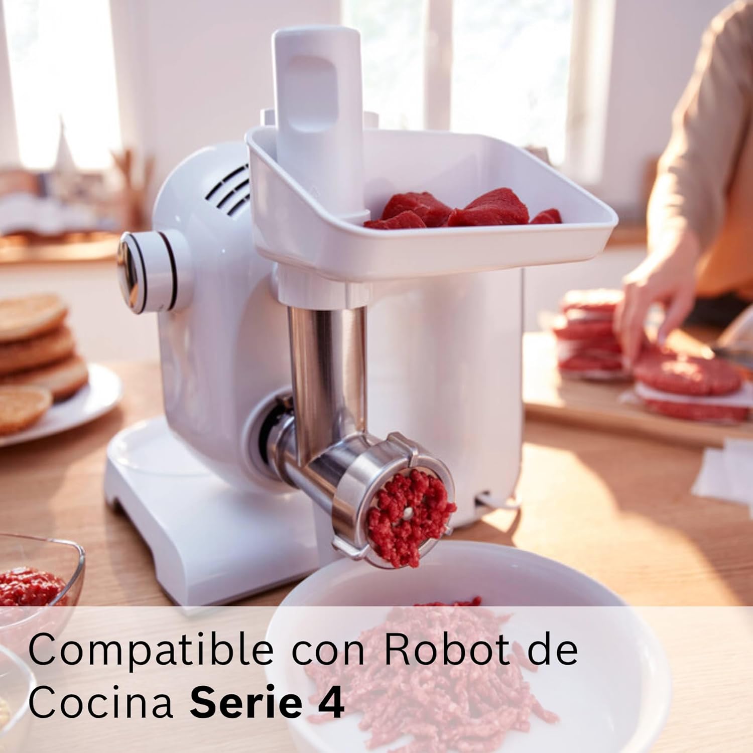 Esta picadora es suitable con la serie de robots de cocina Bosch MUM5: brindándote la posibilidad de aumentar la versatilidad de tu robotic