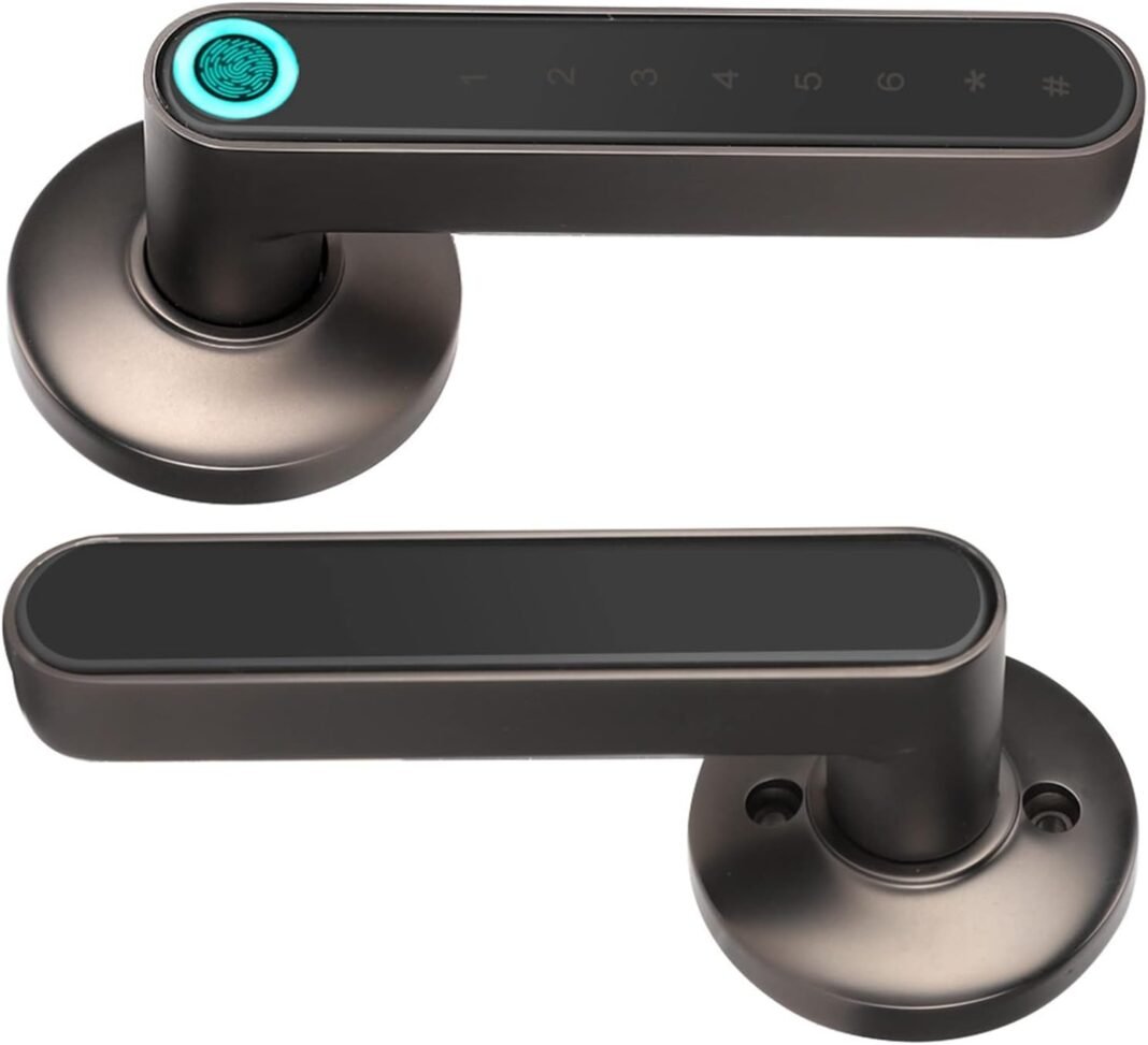 【Manija de Entrada Sin Llave de Puerta Inteligente】】 – Bloqueo Biométrico de Entrada Sin Llave, 4 Métodos de Desbloqueo: Huella Digital, Contraseña, Aplicación Bluetooth, Contraseña temporal.