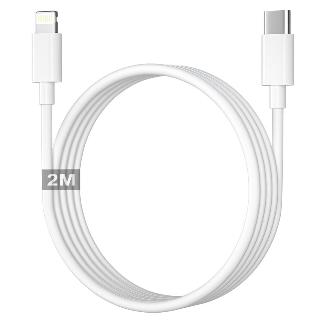 Cable USB C Lightning 2M: El cable iPhone de 2m brinda libertad de movimiento en cualquier situación: desde cargar tu dispositivo en la cama mientras lo usas, hasta conectar equipos en oficinas o salones con enchufes distantes. Este cable cargador de iPhone gracias a su diseño compacto, ligero y versatile, permite guardar fácilmente el cable usbc a lightning y evitar que se enreden. El cable diseñado para iPhone 13 de 2M te brinda libertad adicional para cargar tu teléfono en el auto, en casa y en la oficina.