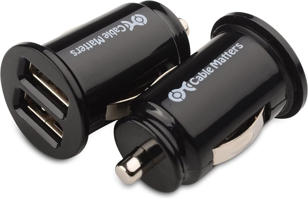 El cargador móvil para automóvil de PERFIL BAJO proporciona carga USB para dos dispositivos; Los puertos de carga USB duales del cargador USB para automóvil emiten 2 amperios compartidos para cargar simultáneamente dos dispositivos a 1 A o un dispositivo a 2 A.