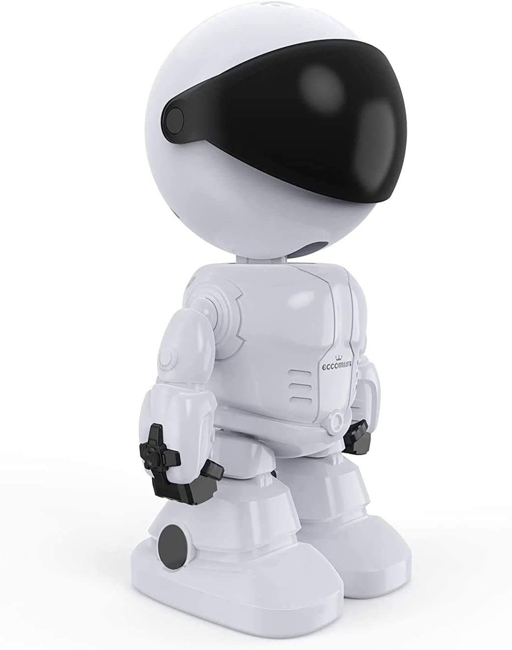 Este robotic con cámara WiFi 1080P con visión infrarroja es tu aliado para monitorear tu hogar. La cámara está equipada con altavoz y micrófono. Es accesible a distancia en diferentes soportes.