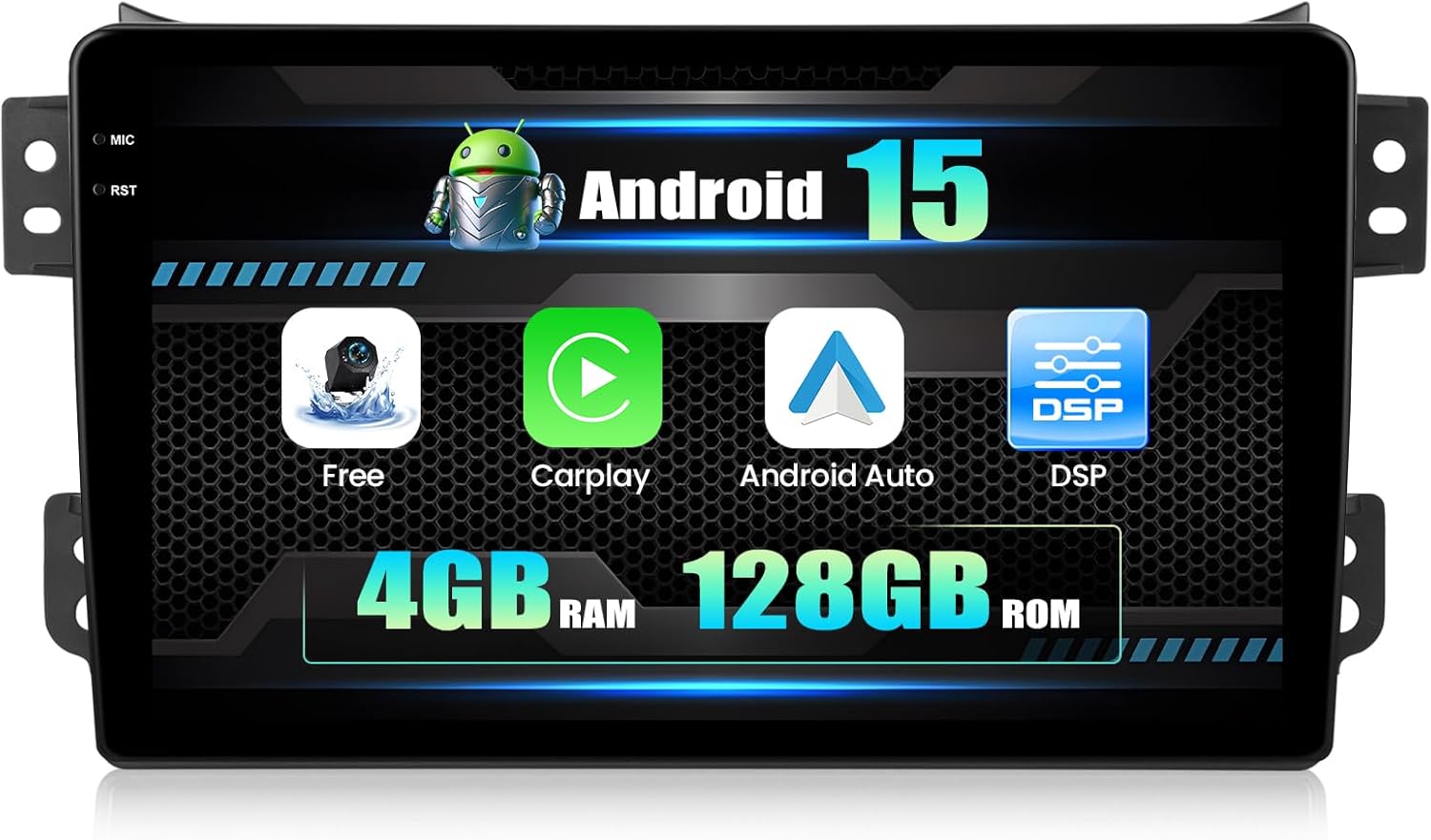 CAMECHO 4G+128G Android 15 para Suzuki Splash Ritz/Opel Agila B 2004-2014 con Navi Carplay Android Auto, Radio Carplay de Pantalla Doble Din de 9″ con Bluetooth5.0 FM/RDS EQ SWC+Cámara Trasera