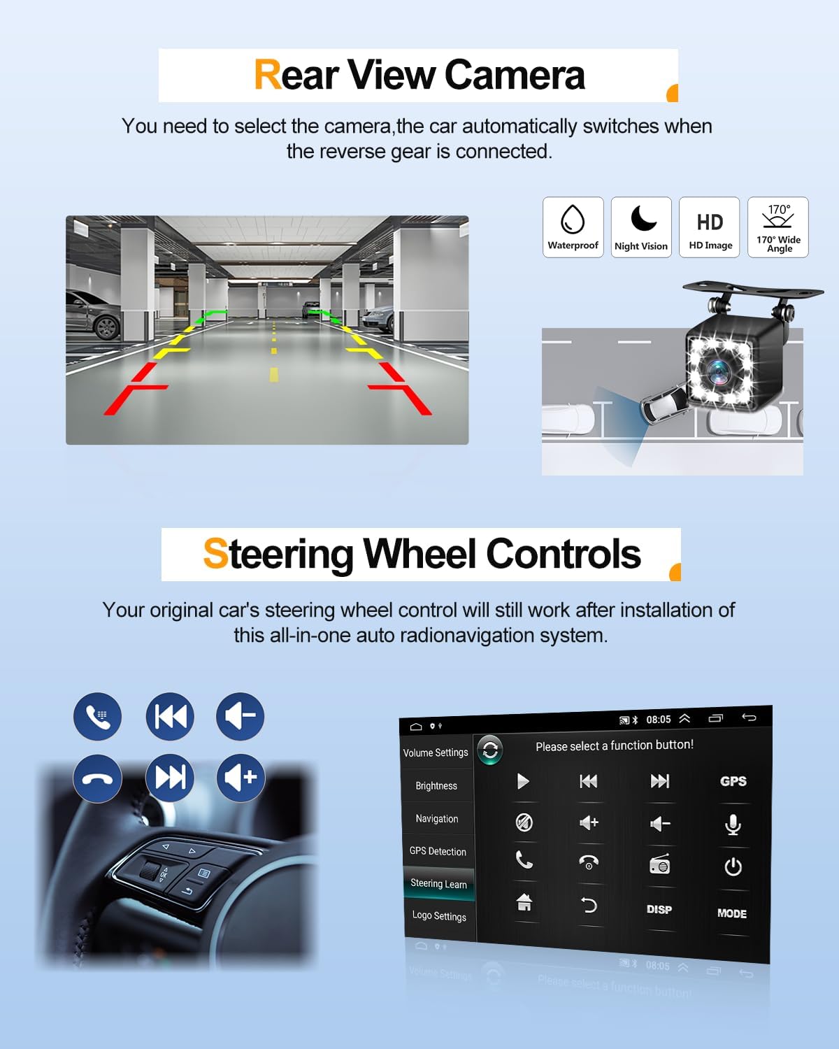 🚖【 Mirror Hyperlink y Cámara Trasera】 Con la Función Mirror Hyperlink, Puede Proyectar la Pantalla de su Teléfono MÓVIL EN LA PANTALLA DE LA RADIO DEL COCHE Y ASÍ FUNCONAR COMO UN SEGUNO TEFONO MÓVIL. Soporta Cámara de Visión Trasera externa, Después del Cablado Exito, Puede Obtener La Imagen Trasera Cuando Pone El Automóvil en Marcha.