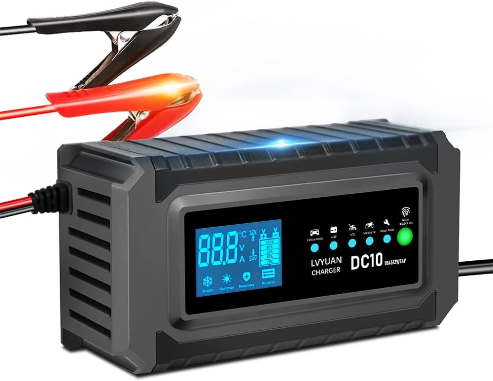 El cargador de batería de coche 10A: Los cargadores rápidos de 12V/10A y 24V/5A para baterías de coche cargan mucho más rápido que los cargadores de coche de 6A. Los procesos de carga de múltiples etapas con carga rápida y de mantenimiento protegen su batería.